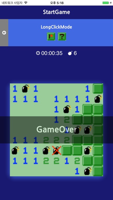 한번 터치하면 지역을 개방하고 길게 누르면 지뢰를 체크합니다.