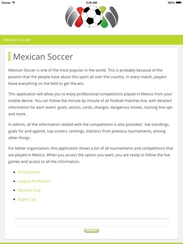 The application of Mexican soccer will give you information such as starting line-ups, goals, assists, cards, changes, and more with constant updates minute by minute.