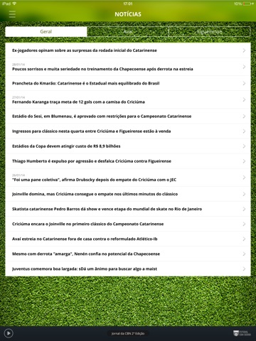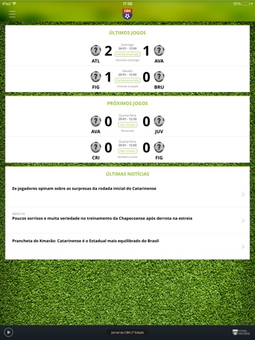 A Rádio CBN Diário apresenta um novo aplicativo para os apaixonados por futebol, onde você pode acompanhar as últimas notícias sobre o Avaí e Figueirense, além da transmissão ao vivo dos jogos acompanhar a classificação do Campeonato Catarinense, próximos e últimos jogos e EM BREVE poderá acompanhar os jogos minuto a minuto.