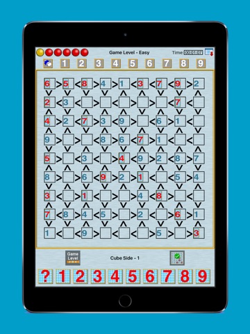 FutoshKubeHD offers you four levels of difficulty on each of the 3x3, 4x4, 5x5, 6x6, 7x7, 8x8 and 9x9 grids. Try out the easy level and progress through the medium, hard and very hard levels. Use the built-in timer to test yourself against the clock!