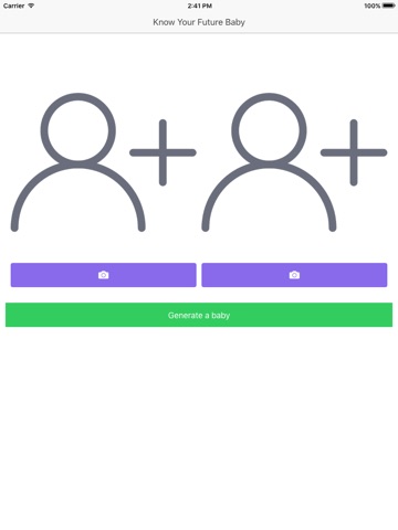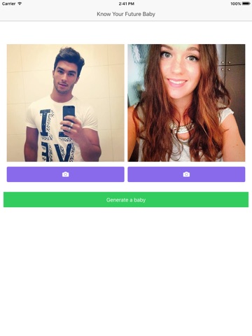 Lets talk about how works this cool application. The first you have to do is choose a picture from the gallery for the father and other for the mother. Then press the generate a baby button and you will get a random picture of a cute baby representing your future son.