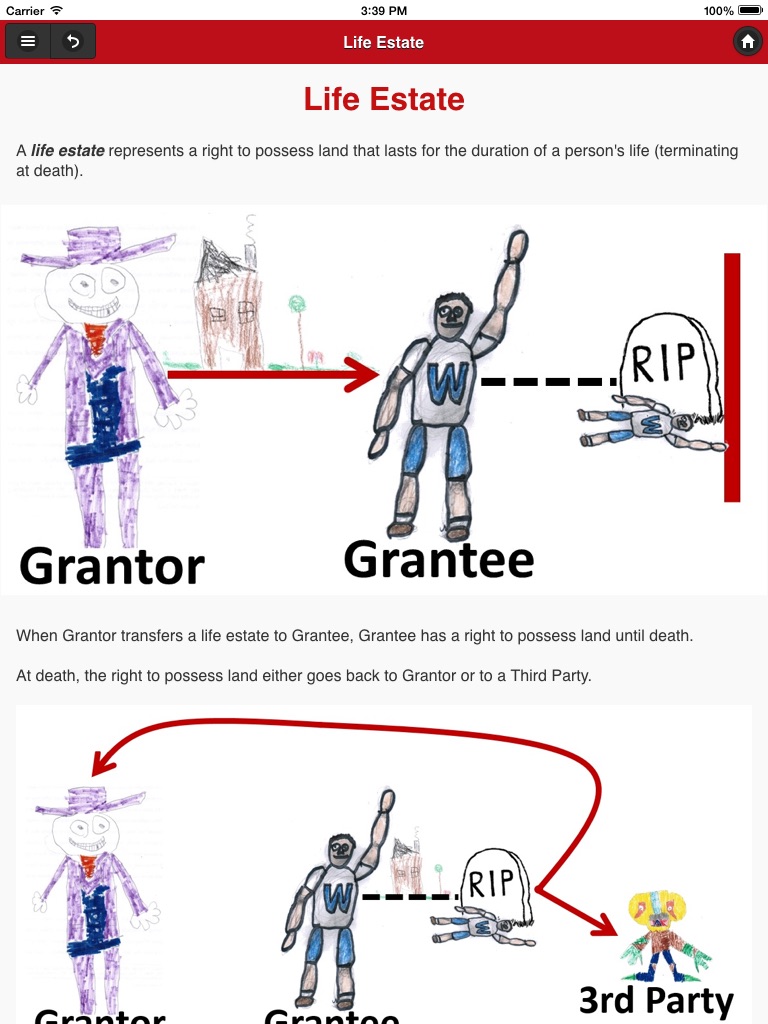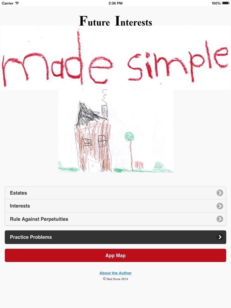This app is a MUST for any 1L law student studying Estates, Future Interests, and the Rule Against Perpetuities. Are you at all confused with these concepts? Do you need more practice problems (with detailed explanations)? This app provides step-by-step instructions to guide even the most confused student through the seeming maze of doctrines and rules. Drawings and diagrams, along with multiple examples and explanations, clarify each concept. Mnemonic devices enable mastery of foreign terminology. An easy-to-navigate App Map makes every topic and page instantly accessible. Sixty practice problems provide detailed explanations with each answer -- grouped according to difficulty level. This app will teach you future interests.