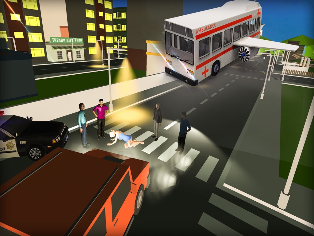 Futuristic Flying Bus Pilot 3D includes flying prison transporter bus, flying school bus duty, flying police bus missions, flying rescue ambulance bus, and exciting flying tourist bus levels.