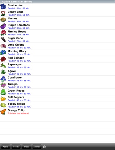 Visual alerts & sound notifications remind you when it’s time to harvest an item (including an indicator on the app icon), even when the app is not running or your device is asleep. Includes ON/OFF feature. (Requires iOS 4.0+).