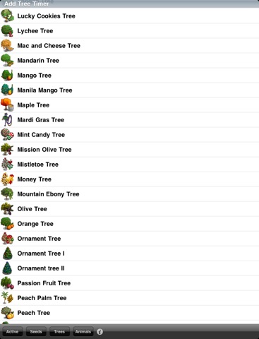 FV Countdown is loaded with every known crop (SEEDS/TREES/ANIMALS) in organized lists for easy locating.