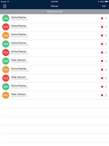 Missed Alerts, SOS and I am Safe messages can be viewed in the Missed screen and reviewed at the convenience of the receiver.