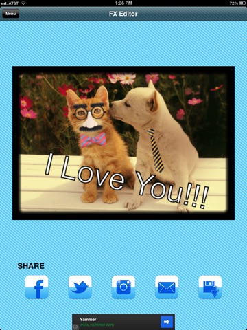 FX Editor gives you the tools to make easy and quick edits to your photos. With cool photo effects, the ability to cut and crop pictures, and do fun stuff like add stickers to your pictures the option are endless. Be as creative as you want or just add a quick color filter to give your pictures a little something more.