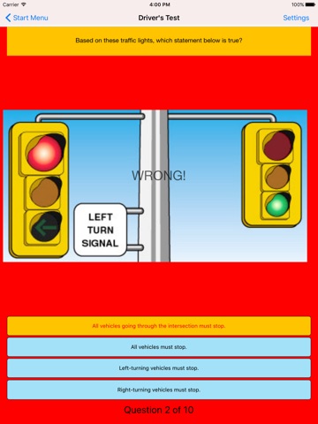 The test settings give you the ability to select test questions from specific chapters in the handbook by simply selecting the chapter that you want to focus on. If you want to focus on “Safe and Responsible Driving”, then you need only select that chapter in the settings. If you want to only do questions on signs then you do all the questions on signs within the entire app.
