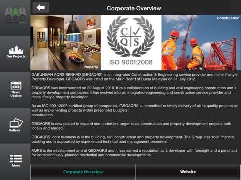 GBGAQRS was incorporated on 20 August 2010. It is a collaboration of building and civil engineering construction and a property development companies It has evolved into an integrated engineering and construction service provider and niche lifestyle property developer.