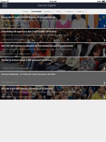 A través de la aplicación de Gaceta Digital UNAM, la Universidad Nacional da mayor difunsión a su quehacer académico, científico, tecnológico, cultural, deportivo y administrativo que dos veces por semana publica Gaceta UNAM en su versión impresa. Ahora todos los lunes y jueves la comunidad universitaria y el público en general podrán tener acceso a su contenido de manera más fácil y rápida por medio de sus dispositivos móviles.