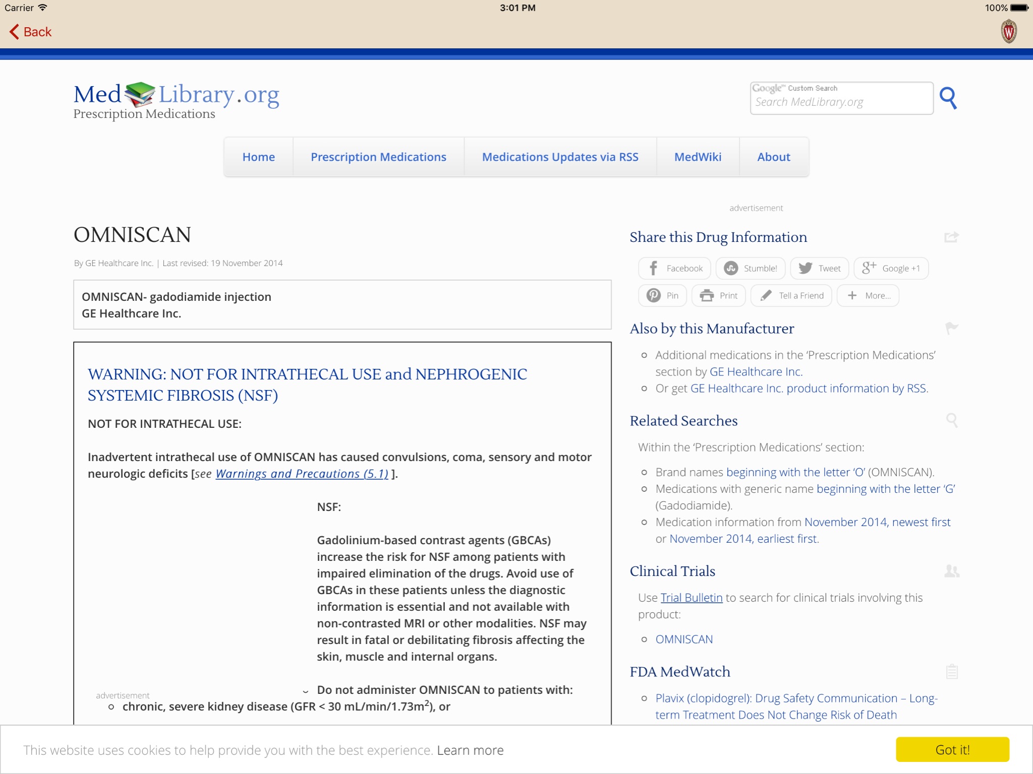 • View package inserts for contrast agents, either online or offline