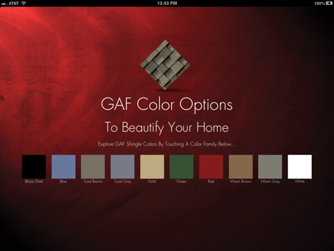 GAF Colors is an application that provides the user with easy navigation of the GAF residential shingle portfolio by grouping residential shingles by color. The app provides stunning images of the shingles and allows the user to see all of the shingle color options that are available to help beautify their home, all at the touch of a finger.