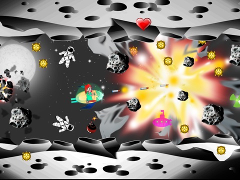 An asteroid shower will test your flying skills as you attempt to smash everything in your path! And a solar storm producing radioactive solar particles creates visibility problems. Help though is available if you can reach the bonus levels and collect rewards. Your chance of survival may depend upon it.