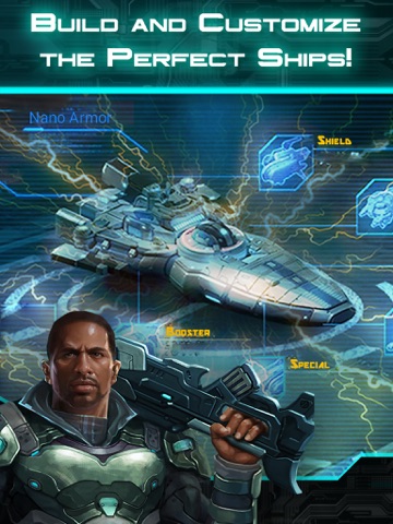 Embark on Missions to hunt down space pirates. Recover secret technology designs and use them build powerful ships of your own!