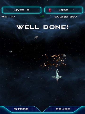 Numerous asteroids and allien battle ships will come your way and make your galaxy adventure harder troughout the game! Use the store to boost up your ship preference.