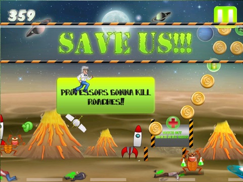 The Roaches who are gathering armies to amass Cockroach Nation are meticulously trying to infect the world with some weird radioactive and biohazard chemical Roach Goo-Juice! Beware, many have already fallen! Fly with the Professor and help save the world!