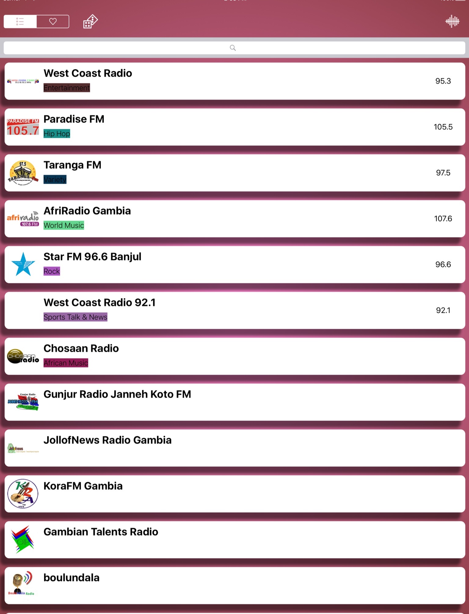 Gambia Radio offers different radio channels in Gambia to mobile users. You can easily find and listen to the broadcast anytime anywhere. Choose and Click to Listen brings you the convenience app experience.