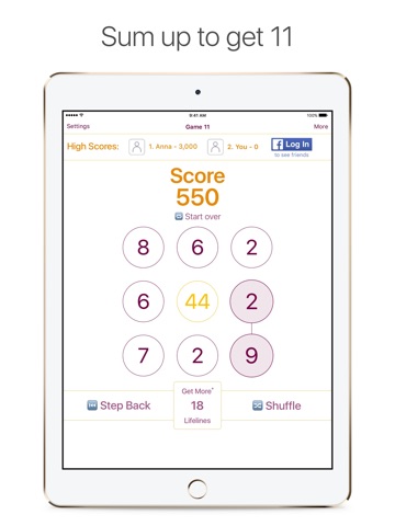 Play this simple game that can carry you ways for hours! Sum up numbers to get 11 and combine them to reach the highest score. Share the game with your friends - see their high score and become the best player!