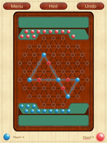 The objective of the game is for each player to create a triangle in which all three sides are equal, all stones of opposing player’s within this triangle are captured and moved off the board. The player who cannot make a move loses.