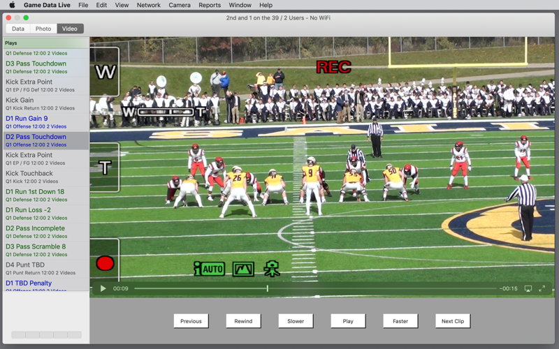 Game Data Live enables the collection and review of football play data along with video - live during a game. Use the play data to find significant plays fast and view their associated video. Generate game stats, player stats and scouting reports from 24 variables per play. Export the play data as a CSV text file and transfer it to Hudl. Store multiple games in multiple seasons for review.