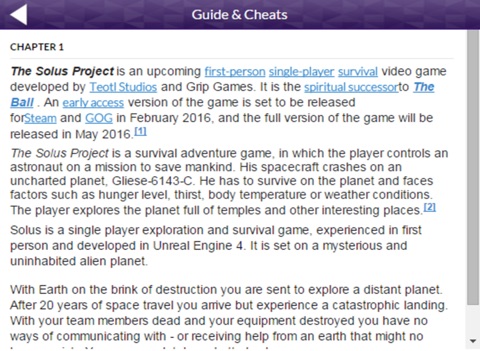 The Solus Project is an upcoming first-person single-player survival video game developed by Teotl Studios and Grip Games. It is the spiritual successor to The Ball . An early access version of the game is set to be released for Steam and GOG in February 2016, and the full version of the game will be released in May 2016.