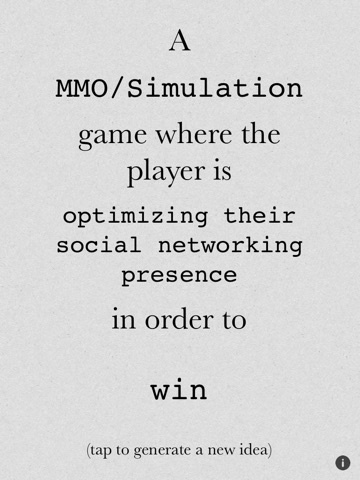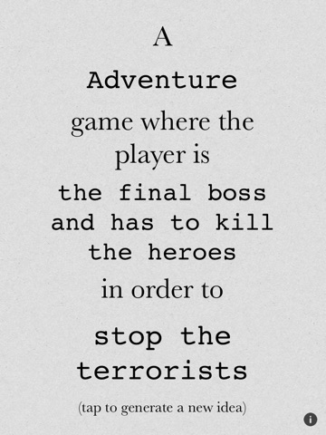 Unable to come up with an idea for your next game? Ready to find out what the next video gaming hit idea might be? The Game Idea Generator will generate random game ideas for you so you can find out those ideas for yourself!