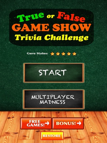 Game Show Trivia on the go! Hours of CRAZY FUN True or False Trivia Entertainment! Great multiplayer feature to challenge your family, friends and coworkers!