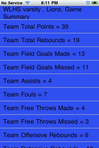 Game Stats for Basketball displays game statistics that have been recorded by an app called Quick Stats. Quick Stats makes it easy to collect game statistics using your iPhone or iPod Touch. Quick Stats is also available on the App Store.