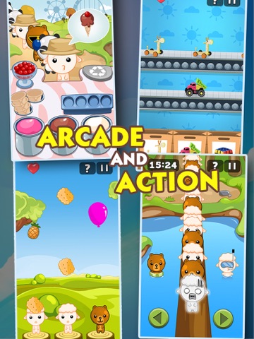 Action,Arcade,Puzzle,Shooting,Racing,Building, all in one app. This is the game that satisfy all your gaming needs! See how fast and accurate you can be. Compete with all the players around the world. Try to eliminate more bandits, crush more candies, burst more bubbles, or sell more icecreams!