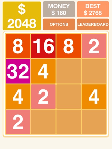 + $2, $4, $8, $16, … is randomly displayed on the screen. + We have 4 rows and 4 columns.