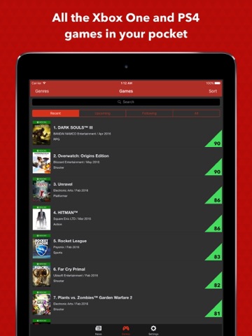 Gaming7 is the pocket companion for PlayStation 4 and Xbox One gamers. It gives you the complete catalog of games, to browse and discover through its blazingly fast search and filters. It also aggregates gaming news (and only that) from a number of sources, so that you stay on top of what’s happening without wasting time on slow and cluttered websites (we hate that as much as you do...).