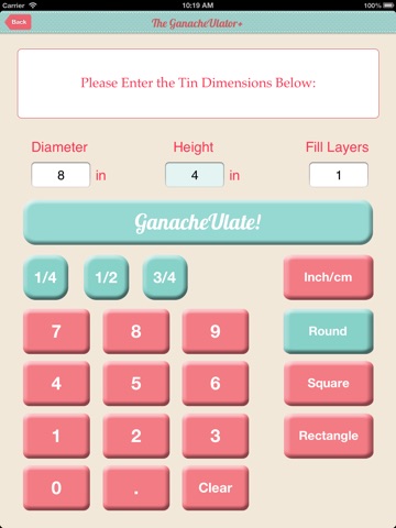 Working in either inches or centimetres, the GanacheUlator+ will give you accurate icing/frosting amounts in 3 easy steps. Simply enter: