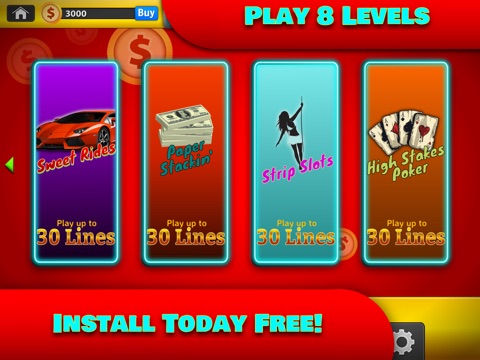 * 8 levels to progress through, including Casino, Sweet Rides, Stack Your Paper, Girls and Poker!