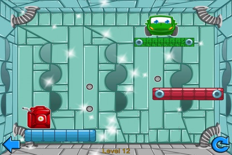 With the use of your best logistics and physics skills you will have to accommodate the objects on the way so that instead of stoping the car they help it reach the pump.