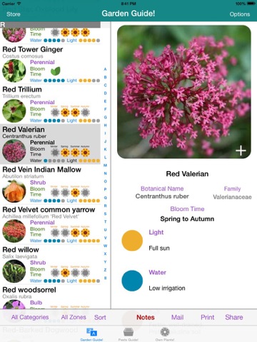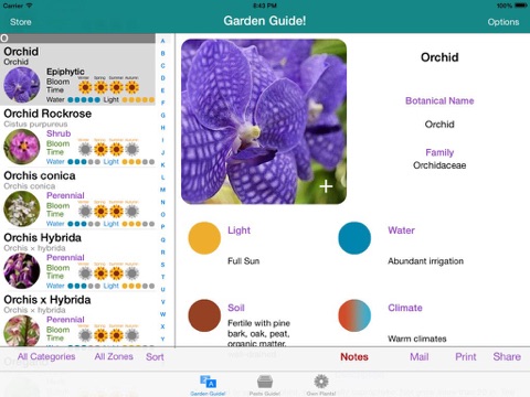 Garden Guide! provide all the information you need about your flowers and plants, fast and easy, in your hand. Up to +7000 plants descriptions, including... common and botanical names, light, water, soil and climate requirements, planting and blooming times, most important care to do and more about flowers and plants you love and enjoy!