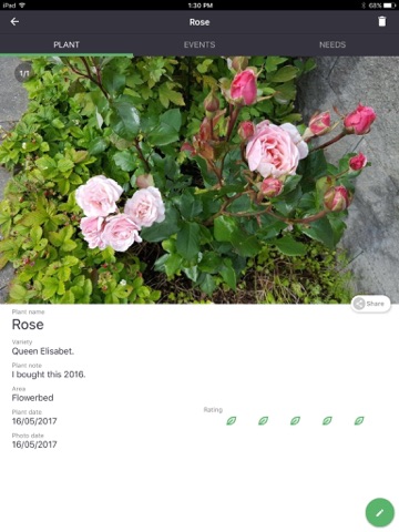 The Event function is flexible and can be used for notes of all your gardening activities and events. Create your own "activity types" and link to plants and areas. Add photos & notes. Follow the progress of your efforts, monitor, and compare the results of your experiments on everything from growing development and crop rotation to nutrients. Create a Wishlist or a to-do list.
