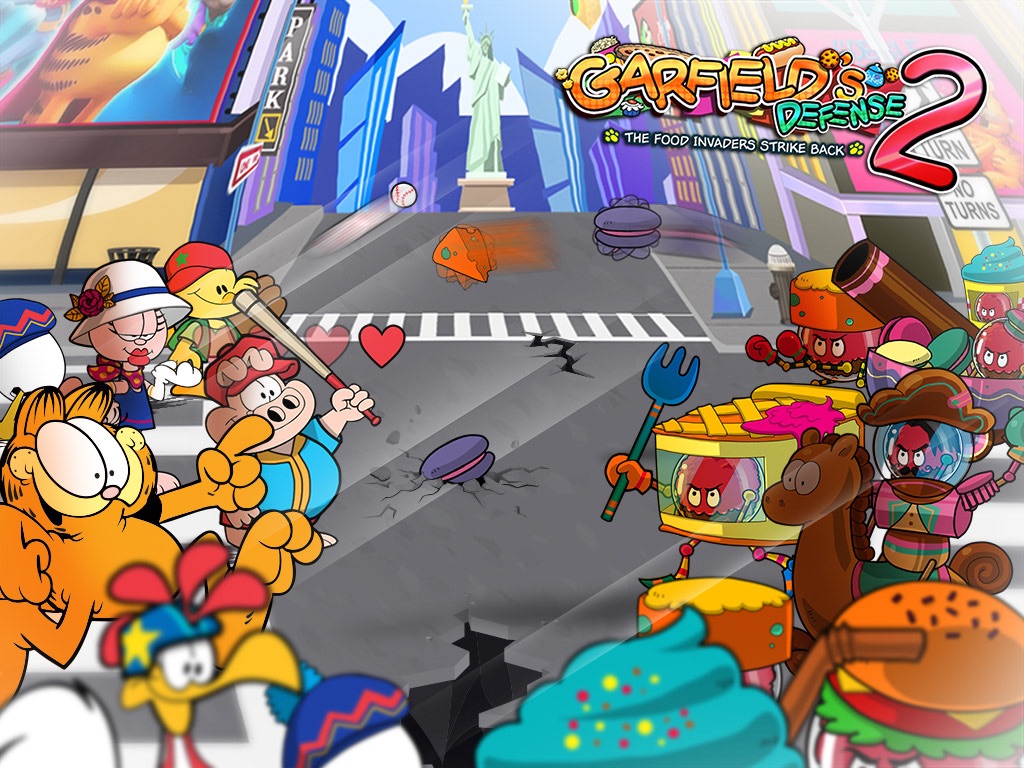 Arm yourself with new skills and new game mechanics to wage cartoonish battle against the Food Invaders in three gorgeous locations around the world! Garfield’s Defense 2: The Food Invaders Strike Back combines the best elements of action, siege, tower, strategy and defense games with colorful graphics straight out of the original comic.