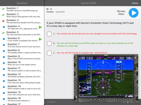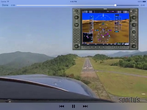 Using a visual menu system, the Garmin G1000 Checkout app is broken down into 16 individual video segments for quick review. In all, this app contains over 107 minutes of scenario-based training and in-flight video from the award-winning team at Sporty’s Academy.