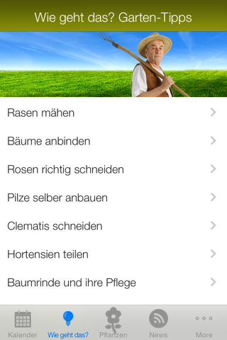 Da denke ich, hier habe ich doch noch eine App gefunden, die mich bei meiner Gartenarbeit unterstützt.... Diese App beinhaltet in der Kalenderfunktion nur die gespeicherten Daten, ich kann damit nicht meinen eigenen Gartenkalender führen. Die Informationen sind dafür aber viel zu dürftig, denn ich kann keine eigenen Termine mit notwendigen Arbeiten setzen. News nur, wenn ich mit dem iPhone online bin. Auch hier finde ich durch googlen mehr Tipps und Hinweise und das dann kostenfrei.
