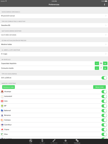 __Filtra tus búsquedas por distancia a la gasolinera, por fecha de actualización de precios o por la marca de la gasolinera entre otros muchos filtros