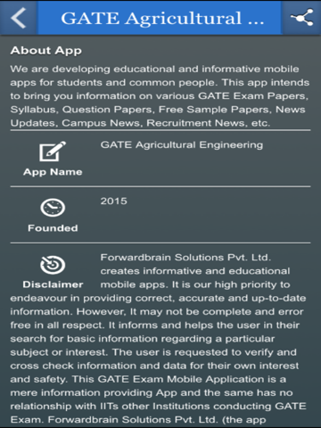 GATE Entrance Exam (Agricultural Engineering) App brings you the information, previous exam papers, latest updates, campus news, recruitment news on GATE score, etc. directly to your phone / tab. Apart from GATE Papers students can also access IIT JAM previous year papers free of cost. This GATE App will be a definite help for students aspiring for a good rank in GATE Entrance in India.Almost all engineering graduates aspire for a good score in GATE so that on the basis of that they can get a seat in prestigious institutions for higher studies or secure a job on the basis of the GATE score. Many Government and Public Sector companies consider GATE score as their selection criteria for recruitment of technical positions in India. A good GATE score is always highly desirable for candidates persuing their engineering degrees in India. GATE is a highly sought after technical entrance in India and appeared by nearly 1 million students across various exam centres in India.