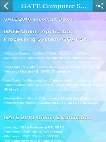 GATE Entrance Exam (Computer Science and Information Technology) App brings you the information, previous exam papers, latest updates, campus news, recruitment news on GATE score, etc. directly to your phone / tab. Apart from GATE Papers students can also access IIT JAM previous year papers free of cost. This GATE App will be a definite help for students aspiring for a good rank in GATE Entrance in India.Almost all engineering graduates aspire for a good score in GATE so that on the basis of that they can get a seat in prestigious institutions for higher studies or secure a job on the basis of the GATE score. Many Government and Public Sector companies consider GATE score as their selection criteria for recruitment of technical positions in India. A good GATE score is always highly desirable for candidates persuing their engineering degrees in India. GATE is a highly sought after technical entrance in India and appeared by nearly 1 million students across various exam centres in India.