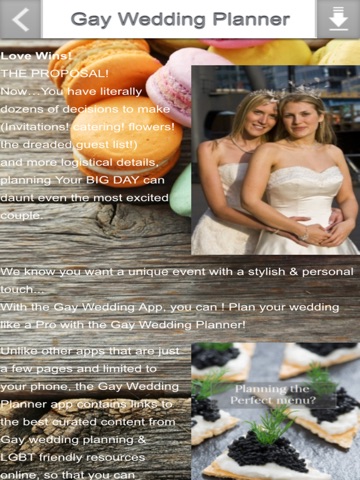Download the only comprehensive Gay Wedding Planning app now!