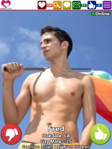 Thumbs Up! Thumbs Down! It’s that easy for Gay, Lesbian, & Bisexuals to find a match in the new GayNow.club app. Simply log into Facebook and answer just a couple of questions and you’re on your way to finding that perfect match.