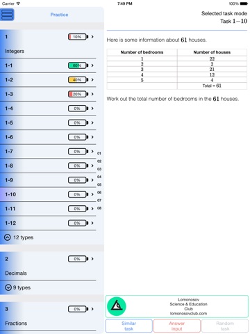 A unique algorithm generates new task conditions, so the amount of possible tasks is indefinite!