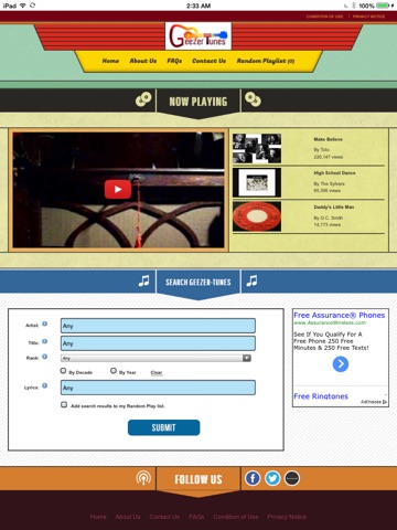 The GeezerTunes app allows users to easily access the Geezer Tunes site from their mobile devices. Geezer Tunes has compiled a database of over 45,000 songs from 1900 through 1990. You can search by artist, song title, rank, year, or lyrics.