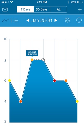 The app lets you track your knee pain so you can see your level of pain over time.
