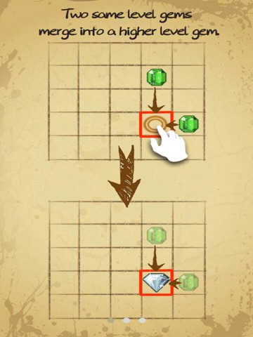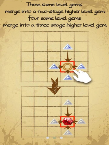 ●Tap one blank space on the board, gems from the above, below, left or right will move to the place you tap and merge into a higher-level grade gem, unless there are other grade gems block on the way.