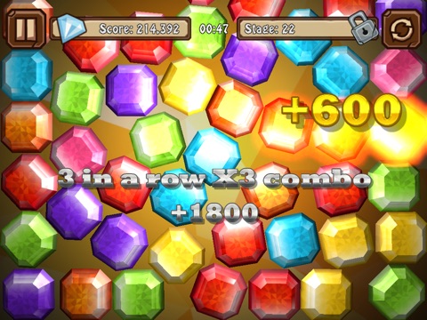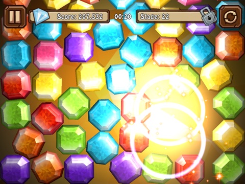 A towering jumble of gems fills the screen, taunting you with its chaotic mess of color. Swipe the screen to make like-colored groups of gems disappear. The more you match the more points youll receive, so no matter how many gems are rattling around, just keep swiping!