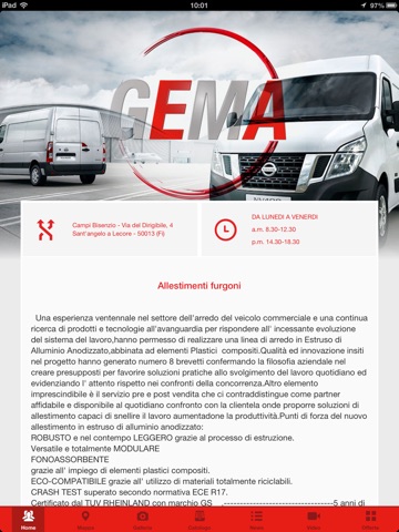 Una esperienza ventennale nel settore dellarredo del veicolo commerciale e una continua ricerca di prodotti e tecnologie allavanguardia per rispondere all incessante evoluzione del sistema del lavoro,hanno permesso di realizzare una linea di arredo in Estruso di Alluminio Anodizzato,abbinata ad elementi Plastici compositi.Qualità ed innovazione insiti nel progetto hanno generato numero 8 brevetti confermando la filosofia aziendale nel creare presupposti per favorire soluzioni pratiche allo svolgimento del lavoro quotidiano ed evidenziando l attento rispetto nei confronti della concorrenza.Altro elemento imprescindibile è il servizio pre e post vendita che ci contraddistingue come partner affidabile e disponibile al quotidiano confronto con la clientela onde proporre soluzioni di allestimento capaci di snellire il lavoro aumentadone la produttività.Punti di forza del nuovo allestimento in estruso di alluminio anodizzato: